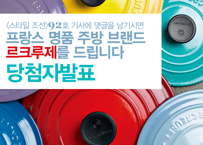 92호 기사 댓글 이벤트 당첨자 발표 작성일자: 5월 29, 2013 글쓴이: stylechosun 조회수: 2212 5월 29, 2013 이벤트에 응모해 주신 분들께 진심으로 감사의 말씀을 드립니다 르크루제 이벤트 당첨자 명단은 아래와 같습니다. 무쇠 냄비 (2명) yooni78 smilenergy 무쇠그릴 (2명) youngzoo youjenia 당첨되신 모든 분들 축하드립니다. 글 네비게이션 이전글베네피트와 함께 송지효 메이크업 도전하기 다음글스타일 조선일보 독자 6분에게 다미아니 러브 브레이슬릿을 드립니다.