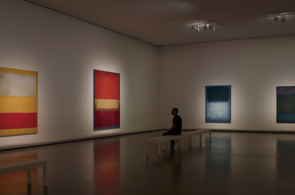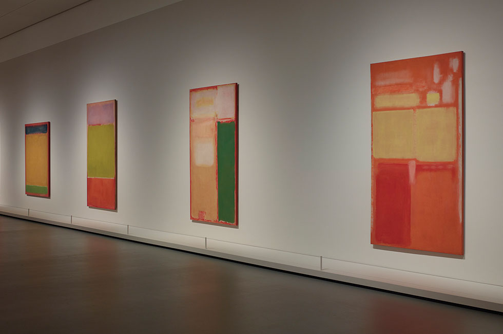 1946년 멀티폼(색채 다층 형상) 양식을 발현하며 자신의 화풍에 전환을 이뤄낸 로스코는 1947년부터 그림을 액자 없이 전시하면서 관람객과 보다 직접적이고 대면적인 관계를 맺고자 했다. 작품의 스케일을 좀 더 키워 이러한 효과를 더욱 극대화하거나, 그림을 설명하는 제목을 짓기보다 번호를 매기거나 무제로 남겨두면서 작품에 암시적인 제목을 부여하는 것을 선호했다. 캔버스에 배열한 형태가 겉보기엔 간단하게 느껴지지만 로스코는 무척 엄격하고도 정밀한 방식으로 작업해나갔다. 모양 자체는 단순히 직사각형의 변주로 비춰지기도 하나, 작품 하나하나에 쓰인 비슷한 듯 다른 유일무이한 색채, 색조가 이루는 조화로움은 실로 놀라운 방식으로 세밀하게 계획되었다. 로스코의 아들이자 이번 전시를 위해 전 세계에 흩어진 방대한 로스코 작품을 한데 모으는 데 주요한 역할을 한 크리스토퍼 로스코가 아버지의 (아마도) 첫사랑이라 밝힌 음악적 요소는 작품 곳곳에서 배어났다. 작가 스스로도 “내가 화가가 된 이유는 그림에 음악과 시만큼이나 강렬한 감정의 힘을 부여하기 위해서다”라고 할 만큼 대담하고 선명한 색상의 선택, 조합과 대비는 화음을 쌓는 듯한 모습을 띤다. 선이 서로 교차하고 반복되는 패턴과 형태를 통해 마치 리듬을 타듯 조화롭게 만들어내는가 하면 언어로 설명할 수 없는 음악의 그것과 닮은 감정과 감각을 전달한다. 로스코의 어두운 색상과 강렬한 대비, 밝은 색상과 부드러운 형태는 음악에서 멜로디를 통해 감정을 전달하는 방식과 비슷하게 흘러간다.