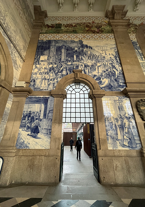 2 아름다운 기차역으로 명성이 자자한 상벤투역 내부. 포르투갈을 상징하는 푸른 세라믹 타일인 아줄레주(Azulejo) 2만 장으로 내부를 꾸몄는데, 1900년대 초반 당대 최고의 타일 아티스트 조르즈 콜라수(Jorge Colaco)가 맡아 포르투갈 역사의 주요 장면을 담아냈다.
