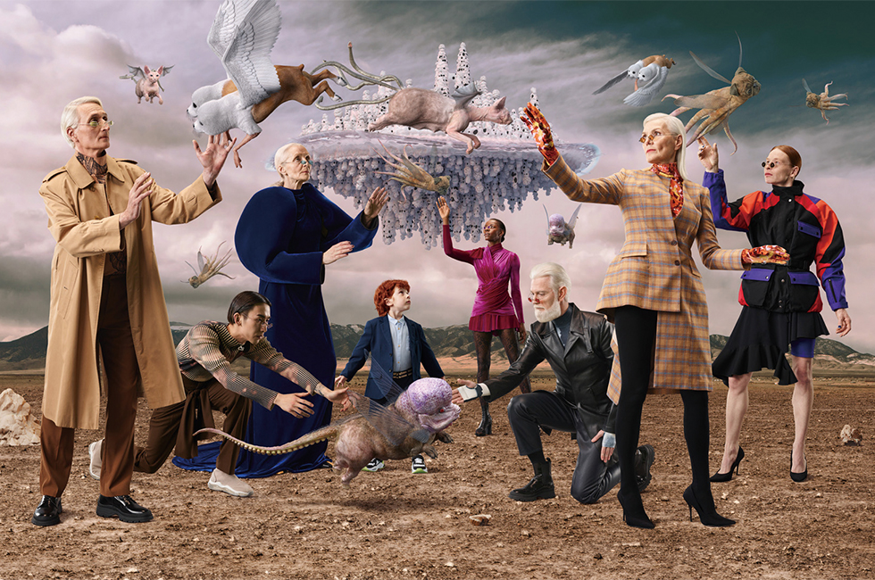 젠틀몬스터와 펜디의 만남을 보면 이종 간의 협업만이 아니라 넓게 보면 같은 패션계에 속한 두 브랜드 사이에서 일어나는 시너지도 흥미롭다. 우리나라 패션 아이웨어 브랜드이며 예술 작품으로 수놓은 공간 디자인이 돋보이는 쇼룸을 운영하는 등 창의적 마케팅에서 발군의 솜씨를 보여온 젠틀몬스터가 이탈리아 명품 브랜드 펜디와 ‘젠틀펜디’ 컬렉션을 내놓았는데, 러시아 아티스트 컬렉티브로 초현실주의 작품을 보는 듯 몽환적이고 세련된 감성을 지닌 AES+F가 영상과 포스터 등을 아우르는 캠페인(2019)을 맡으며 시너지를 이끌어냈다. 또 AES+F가 젠틀몬스터의 아이웨어 라인업인 ‘나노컬렉션’ 캠페인의 일환으로 진행한 <생명의 순환>(2021)이라는 짧지만 강렬한 영상 작업(싱글 채널 필름)도 이번 전시에서 상영되고 있다. 요즘 패션 브랜드들은 단순히 광고 캠페인으로 보기에는 아까울 정도로 영화를 방불케 하는 스토리텔링과 미학을 곁들인 영상 작업을 앞다퉈 선보이고 있는데, 현대미술에 ‘진심’인 브랜드로 수십 년에 걸쳐 작가들을 후원하고 협업을 진행해온 프라다는 이 분야의 선구자 중 하나로 꼽힐 만하다. 이번 <예술과 산업> 전시에서도 중국 출신의 세계적인 현대미술가 양푸동(Yang Fudong)과 협업해 완성한 ‘처음 맞는 봄’(2010)이 소개되고 있는데, 현대를 살아가는 주인공들이 우연히 과거 중국 왕조시대 사람들을 만나는 내용을 1930년 상하이를 무대로 담아냈다. 프라다 제품들이 등장하지만 어색하지 않고 중국의 전통 인식에 대한 부재를 시각화하면서 생각할 거리까지 제시하는 등 상업과 예술 사이를 묘하게 오가면서 풀어내는 양푸동의 솜씨가 발군이다. 예술과 산업의 결합이 반드시 긍정적인 효과만 내지는 않겠지만, 상생의 시너지를 발산하는 창조적 지점이 궁금하다면 찾아볼 만한 전시다.