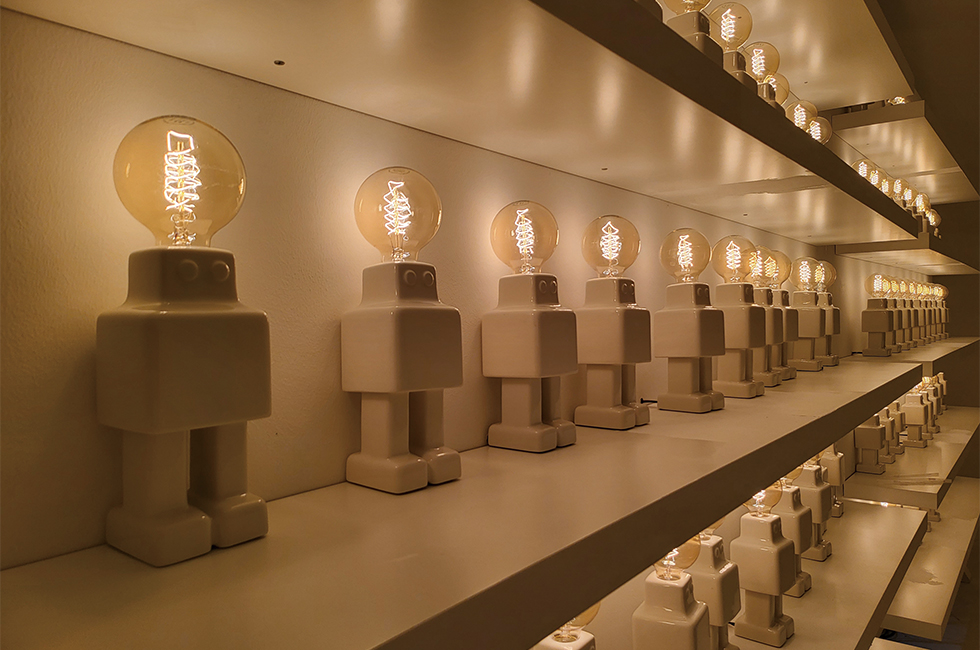 3 현대자동차의 2013년 예술-산업 협업 프로젝트 ‘더 브릴리언트 아트 프로젝트: 드림 소사이어티’에서 첫선을 보인 김용호 작가의 작품을 재구성한 ‘모던 보이’(2022). 평범해 보이지만 스스로 빛을 밝혀 전진하는 대중을 뜻하는 제목의 작품으로 세라믹 모형 1백8개가 동원됐다.