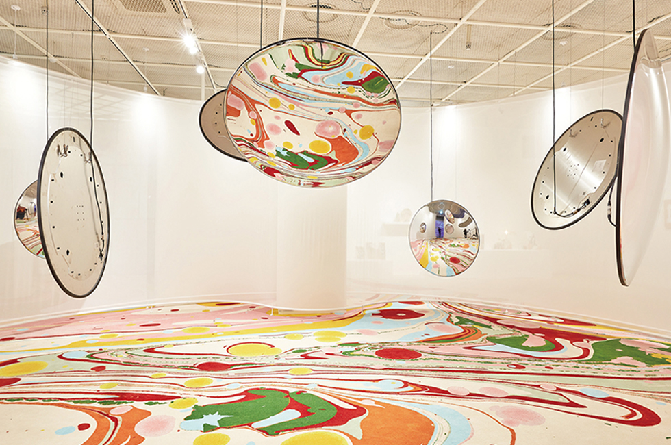 7 프리미엄 아이스크림 브랜드 하겐다즈와 롯데갤러리의 협업 전시 <멜팅 포인트(Melting Point)> 설치 모습. 롯데백화점 잠실점 에비뉴엘 6층 아트홀에서 진행 중인 전시로 9인의 작가가 회화, 키네틱 아트, 미디어 아트 등 다양한 장르를 아우르는 작업 세계를 흥미롭게 펼쳐 보이고 있다. 이미지 제공_롯데갤러리