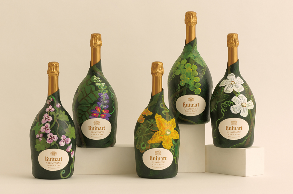 10 프랑스의 유서 깊은 샴페인 브랜드 루이나(Ruinart)가 지난 9월 초 코엑스에서 열린 프리즈 서울 2022에 라운지를 열었다. 김종학 작가와의 아트 협업으로 자연과 생물 다양성의 아름다움을 브랜드의 상징인 ‘블랑 드 블랑 세컨드 스킨 매그넘’ 15병에 표현해낸 디자인을 선보였다. 이미지 제공_루이나