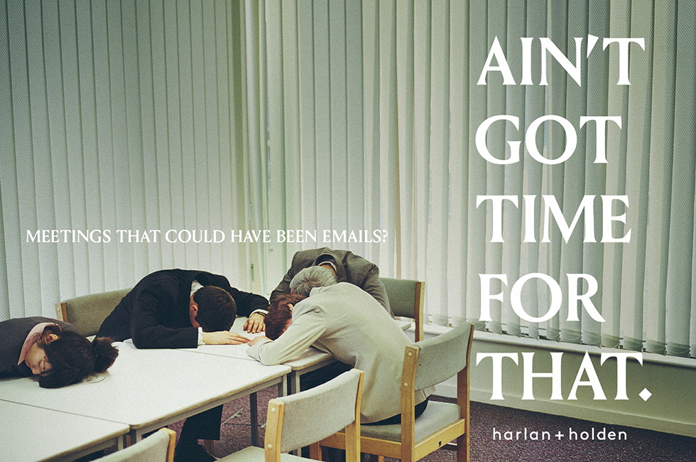 ‘Ain’t Got Time for That(그럴 시간 없어)’이라는 문구에 담긴 사고방식은 지구상에서 시간이 허락하는 모든 가능성을 열어둘 수 있게 해준다. 이는 우리가 아는 세계를 좀 더 긍정적으로 변화시킬 수도 있다. 할란앤홀든의 많은 옷들은 단추나 지퍼로 여닫지 않아도 된다. 컬러는 믹스 매치가 용이한 뉴트럴 계열로 구성했다. 모든 제품은 고객들의 아침 일과와 일상생활을 염두에 두고 디자인한다.