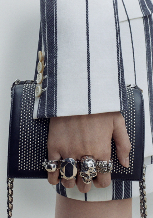 알렉산더 맥퀸의 아이코닉한 포링 디테일이 돋보이는 미니 주얼 사첼 2백28만원