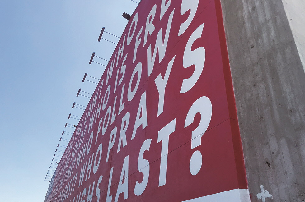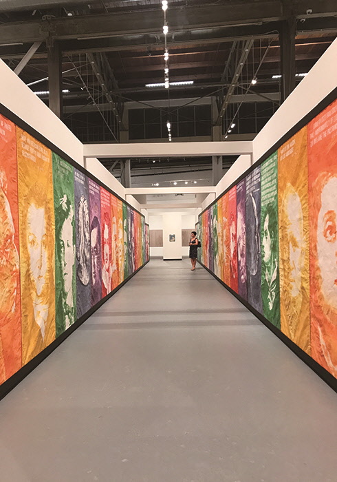 1 아츠 디스트릭트에 있는 MOCA의 별관 게펜 컨템퍼러리(The Geffen Contemporary at MOCA) 건물 외관. 강렬한 그래픽과 사회 비판적 메시지로 유명한 바버라 크루거(Barbara Kruger)의 작품 ‘Untitled(Questions)’가 건물의 파사드 일부를 감싸고 있다. Photo by SY Ko 2 게펜 컨템퍼러리에 있는 마이크 켈리(Mike Kelly)의 작품 ‘Pay for Your Pleasure’(1988). Photo SY Ko 3 게펜 컨템퍼러리 미술관. Courtesy of The Museum of Contemporary Art, Los Angeles. Photo by Elon Schoenholz 4 건축과 디자인에 대해 집중적으로 조명하는 미술관 A+D(Architecture and Design Museum)의 전시 풍경. Courtesy of A+D. Photo by Hans Koesters. 5 아츠 디스트릭트의 명소로 자리 잡은 하우저 앤드 워스 로스앤젤레스의 외관(2019). Photo by Elon Schoenholz 6 하우저 앤드 워스 로스앤젤레스의 유기농 레스토랑 마누엘라(Manuela, 2016). Photo by Joshua Targownik/targophoto.com 7 하우저 앤드 워스 로스앤젤레스에서 지난해 하반기 열린 미국 아티스트 찰스 게인스(Charles Gaines)의 전시 풍경. Photo by SY Ko. 8 아츠 디스트릭트 곳곳에서 볼 수 있는 스트리트 아트 작품. ⓒLos Angeles Tourism