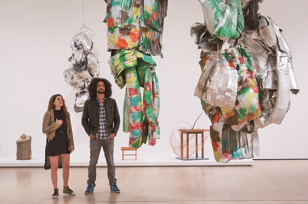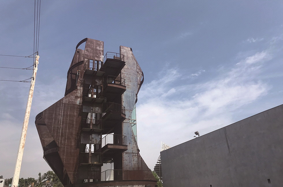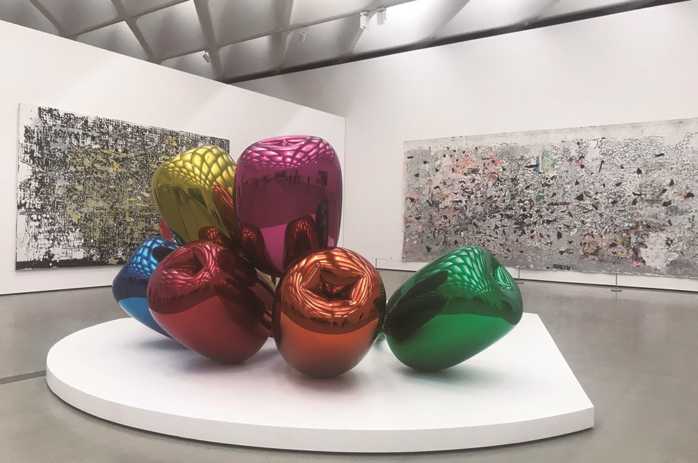1 회화, 사진, 설치 작품 등 다양한 장르의 동시대 미술 트렌드를 접할 수 있는 로스앤젤레스 현대미술관(Museum of Contemporary Art, Los Angeles, MOCA). Photo by SY Ko 2 그랜드 애비뉴에 있는 MOCA에서 2016년 9월 13일부터 시작해 현재도 선보이고 있는 소장품 전시 풍경. 미국 작가 존 체임벌린(John Chamberlain)의 조각 작품 등이 보인다. Courtesy of MOCA. Photo by Brian Forrest 3, 4 풀 죽었던 로스앤젤레스 다운타운 풍경을 바꾼 랜드마크 중 하나인 더 브로드(The Broad)의 내부와 외관. 미술관 설계는 일류 건축 스튜디오 딜러 스코피디오+렌프로가 맡았다. 5 더 브로드 바로 옆에 자리한 월트 디즈니 콘서트홀. 세계적인 건축 거장 프랭크 게리가 설계했다. 3~5 Photo by SY Ko