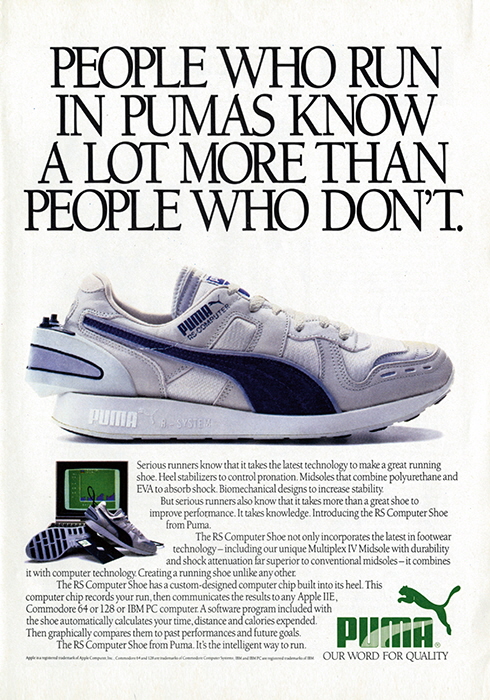 유수 브랜드들은 이미 오래전부터 자신들의 특별한 스니커즈를 매장 중앙에 부스를 마련해 전시해두곤 했으며, 팬들은 그걸 보며 사진을 찍어 SNS에 올렸다. 이렇듯 스니커즈 역사에 기념비적인 순간이 많고, 그것들 자체가 우리 일상을 바꾸어놓은 중요한 장면이기도 하다. 남녀노소 가리지 않는 지구인들의 문화적 상징이며 산업 규모가 어마어마한 매혹적인 상품이기도 한 ‘스니커즈’를 둘러싼 현상은 이제 드디어 전시장에서도 진지하게 다뤄지고 있다. 런던 디자인 뮤지엄에서 지난 5월 18일부터 열리고 있는 전(오는 10월 24일까지). 저마다의 의미를 지닌 2백여 켤레의 스니커즈를 내세운 전시장에는 스니커즈 역사의 중요한 순간들이 조목조목 펼쳐져 있다. 수십 년을 이어온 히트 상품은 물론 본격적인 스니커즈 시장을 열었다고 평가받는 컨버스 올스타 척 테일러 시리즈, 끈을 제거해 스니커즈를 신고 벗는 방식의 패러다임을 바꾼 푸마 디스크, 미드솔에 카본을 삽입해 날아가는 듯한 탄성을 부여한 나이키 알파 넥스트 퍼센트 등을 통해 기술의 진화를 돌아보고, 농구 황제이자 스니커즈의 신이기도 한 마이클 조던의 다양한 농구화, 래퍼 카녜이 웨스트가 직접 디자인한 아이다스의 스니커즈 등을 통해 스니커즈가 ‘걸어온’ 협업의 역사를 되짚는다. 슈프림, 오프화이트의 다채로운 협업 스니커즈도 볼 수 있다. 미래도 전망한다. 발의 열 패턴을 사용해 최적의 핏(fit)을 찾도록 설계된 리복의 인스타 펌프 퓨리 시리즈(이 제품은 이 기술을 적용하기 전에도 마니아들의 엄청난 사랑을 받았다!), 스니커즈 혀에 LCD 컴퓨터를 삽입해 러너의 달리기 패턴을 추척하는 아이다스의 ‘마이크로 페이서’ 기능도 볼 수 있다. 아디다스는 미래의 스니커즈에 열정적이다. 이른바 ‘3D 뜨개질’ 방식으로 순식간에 갑피를 짜내는 기술도 아디다스 고유의 것이다. 패널과 패널을 잇는 과정에서 불필요하게 낭비되는 원단을 줄일 뿐 아니라 접착제도 사용하지 않으니 분명 이로운 기술이다. 식물에서 추출한 원료만으로 만든 스니커즈, 고기능 재활용 소재를 사용해 만든 스니커즈도 전시한다.