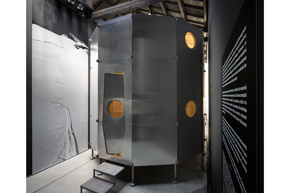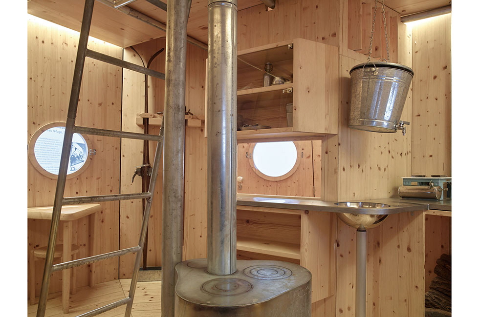 양철로 만든 우주정거장처럼 생긴 레퓌주 토노는 샤를로트 페리앙이 1937년 크로아티아에서 찍은 사진 속 회전목마에서 영감을 받아 설계했다고 알려져 있다. 스키어들이 알프스의 산에서 임시 거주지를 세우고 휴식을 취할 수 있도록 설계된 이동식 가건축물로 각각의 패널 모듈이 40kg 미만으로 가벼워 전문가가 아니더라도 어렵지 않게 조립·분리하고 이동할 수 있다. 1층의 접이식 침대와 2층의 2층 침대를 비롯한 침대 6개로 8명의 인원까지 수용할 수 있고, 기차식 침실에서 영감받아 가죽 줄을 이용해 접고 펴는 방식으로 내부 공간의 활용도를 한껏 높인 이 건축물은 다양한 필요를 충족시켜주는 빼어난 기계이자 새로운 거주 방식의 제안이기도 하다. 작은 공간이지만 조리도 할 수 있는 간이 부엌이라든지, 눈 녹은 물을 활용할 수 있도록 양동이가 설치된 나무 소재의 작업대, 중앙의 둥근 철제 기둥 안에 설치되어 공간 효용을 살린 난로 등 세심한 설계와 요소가 단연 돋보인다. 환경 친화적인 나무 소재와 더불어 경량화를 위한 알루미늄이라는 신소재의 활용까지, 레퓌주 토노의 면면을 보노라면 근대적 주거 환경 실험의 정점에서 그녀가 얼마나 도전적이고 혁신적인 사고를 했는지 알 수 있다. 또 상류층을 위한 장식적 거주 공간의 설계에서 벗어나 자연과 인간이 어우러지는 환경에서 인간을 위한 도구로서의 공간을 제안하고자 하는 포용적 시선도 느껴진다. 이처럼 진취적인 사고방식이 스며든 그녀의 유목 건축물은 오늘날에도 전혀 어색하지 않을뿐더러, 남극이나 사막의 연구 기지 등의 귀감이 될 정도로 미래적인 면모가 배어 있기도 하다.