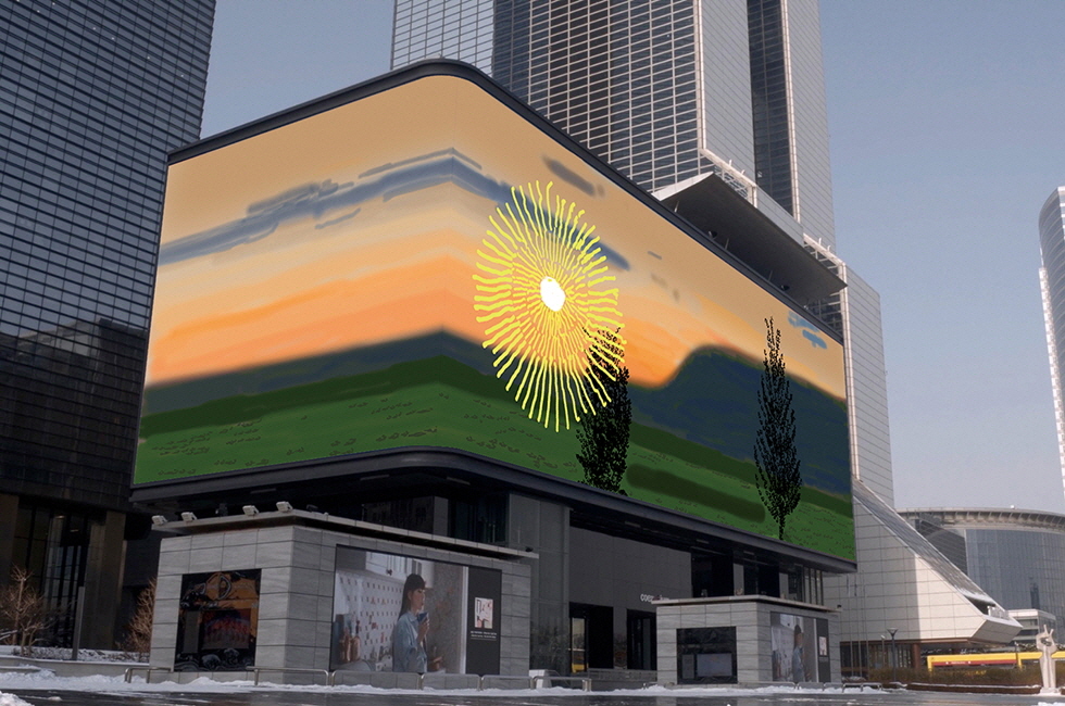 지난 5월 1일 저녁, 현존하는 가장 사랑받는 예술가 중 한 명인 데이비드 호크니(David Hockney)의 손에서 탄생한 ‘봄날의 도래’를 알리는 신작이 서울 하늘을 물들였다. ‘태양 혹은 죽음을 오랫동안 바라볼 수 없음을 기억하라’라는 2분 30초짜리 영상으로 일명 ‘해돋이 애니메이션’이다. ‘해 질 녘의 길거리에서 일출을 바라본다’는 호크니의 발상은 오랜 팬데믹에 지친 많은 이들의 감탄 어린 호응을 자아냈다. 이렇듯 공공장소에서 예술의 힘을 보여주는 행보를 주도한 CIRCA 프로젝트는 지난해 10월 암울한 코로나 시대의 일상에 한 줄기 빛을 비춰주듯 영국 런던에서 시작됐다. 런던의 상징으로 여겨지는 옥외 전광판 ‘피커딜리 라이트’와 온라인을 통해 팔방미인 예술가 패티 스미스(Patti Smith), 중국 작가 아이웨이웨이(Ai Weiwei) 같은 문화 예술계 거장을 위시해 유망주, 신진 작가까지 아우르는 다양한 디지털 아트를 선보이며 시민들에게 희망의 메시지를 건네오고 있다. 그러다 올 들어 호크니와 함께한 5월부터는 서울을 비롯한 뉴욕, 도쿄, 로스앤젤레스 등으로 네트워크를 확장했다. 5개 도시에서 같은 작가의 디지털 아트를 감상할 수 있게 된 것. 한국에서는 영국과 마찬가지로 2021년을 본떠 20시 21분 도시의 표준시로 매일 동일한 시각에 상영을 시작한다. 코엑스 케이팝 스퀘어의 커다란 기역(ㄱ) 자 전광판은 디지털 아트 캔버스이자 야외 전시장으로 탈바꿈한다. 주로 짧은 분량의 상업광고가 상영되던 스크린은 2분 30여 초 동안 대중과 예술의 소통을 꾀한다. 매달 다른 아티스트를 섭외해 2021년의 세계를 반영한 신작을 공개하는 ‘찰나의 미술’은 더불어 사는 삶에 예술적 사유를 가미한다. 호크니의 뒤를 이어 지난 6월 한 달에 걸쳐 소개된 작가는 미국 출신의 니키타 게일(Nikita Gale). ‘Rain’, ‘Heat’, ‘Blizzard’, ‘Fog’ 등 네 작품을 돌아가면서 선보인 니키타 게일의 영상 시리즈는 국가 간 여행길이 닫히고 크고 작은 대면 공연이 중단된 상황에서 날씨의 변화, 계절의 흐름을 직시하도록 관중을 초대했다.