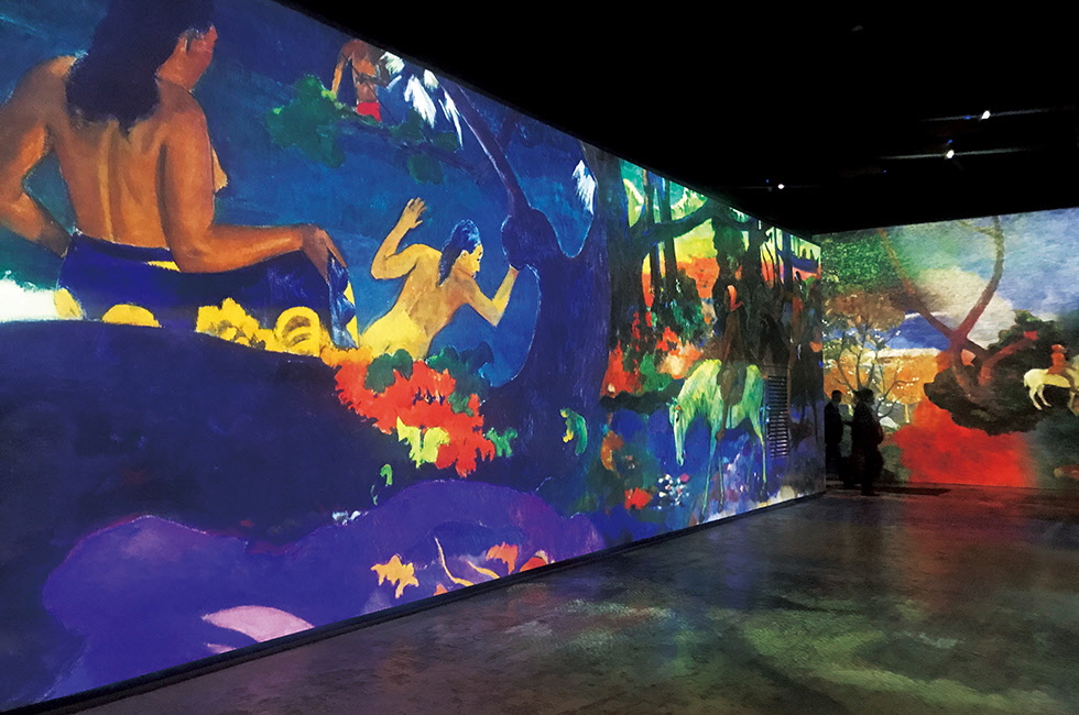4, 5. 세기의 예술가들이 남긴 명작을 음악, 동적인 이미지와 절묘하게 조합한 몰입형 전시 <빛의 벙커: 반 고흐>展이 제주 성산 전시장에서 열리고 있다. 폴 고갱의 작품을 담은 10분짜리 작품도 볼 수 있다. Photo by SY Ko