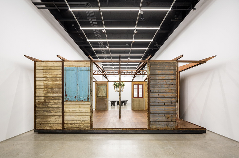 1 서울 성수동에 자리한 더페이지갤러리는 1년 동안 ‘Every… & …’ 시리즈로 기획 전시를 준비하고 있다. 시작을 알리는 <Everywhere… & Here…> 전시가 지난 10월 22일부터 오는 1월 23일까지 진행된다. 2. 장 프루베의 ‘6 X 6 Demountable House’가 1944년 당시 그대로의 모습으로 전시장 입구에 설치돼 있다. 3. ‘소프트 초현실’ 룸에 놓인 작품. 왼쪽부터 이재이의 ‘SWAN’, 롭 윈(Rob Wynne)의 ‘Arcadia’, 마르텐 바스(Maarten Baas)의 ‘Clay Dining Chair – Yellow, Clay Table with Drawer’ 등의 작품이 보인다. 4. 무채색 작품으로 꾸민 ‘뉴 미니멀리스트’ 룸에는 김기드온의 가구 ‘Wire-mesh Armchair #1’, 라이언 갠더(Ryan Gander)의 ‘On Slow Obliteration’, 오정근의 ‘The Interspaces Kurfustendamm’이 전시돼 있다. 5. 스티븐 해링턴의 ‘Vanishing Art’가 자리 잡고 있는 ‘키덜트 판타지’ 룸. 공간 전체를 감싼 벽면의 노란 선은 작가의 주문대로 꾸민 것이다. 6. 조지 콘도(George Condo)의 ‘Memphis Mary’(2005), Oil on canvas, 61 X 61cm. 지난 12월 3일부터 시작된 조지 콘도 개인전은 오는 1월 23일까지 계속된다.