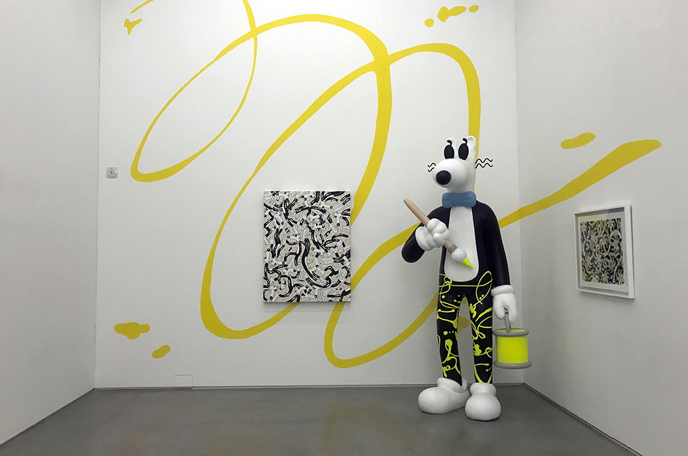 다음 공간으로 넘어가기 전, 좁아진 복도를 따라 생동감 넘치는 ‘스티븐 해링턴의 방’에 도착했다. 강 대표의 “웰컴 투 캘리포니아!”란 인사와 함께 유머러스하고 톡톡 튀는 스티븐 해링턴(Steven Harrington)의 작품들이 시선을 절로 사로잡는다. 한국에서는 처음으로 전시된 스티븐 해링턴의 작품들이 카우스(KAWS)의 원형 회화, 캄파냐 형제의 의자와 함께 놓여 있다. “콘셉트는 키덜트 판타지예요. 우리 안에 있는 키즈(kids)를 끄집어냈어요. 한국의 분위기가 너무 심각해지지 않으면 좋겠어요.” 나머지 ‘소프트 초현실’의 방과 ‘뉴 미니멀리스트’는 이름 그대로 상반된 공간이다. 미샤 칸(Misha Kahn)처럼 독특한 질감과 형태의 작품들이 있는가 하면 다른 방에는 도널드 저드처럼 절제된 형태와 색상의 작품들이 놓여 있다. 또 이곳엔 김기드온의 가구, 이재이의 사진, 박석민의 회화 등 30~40대 젊은 작가들 작품도 몇몇 눈에 띈다. 확연히 구획된 공간과 어쩌면 산발적이었을 작품을 잘 편집한 덕에 네 가지 방의 분위기가 관람을 더욱 다채롭게 한다.