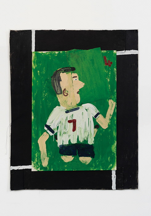 크기 따윈 신경 쓰지 않고 이리저리 움직이며 즉흥적으로 그리는 로즈 와일리의 모습은 어쩐지 연약하지만 자유로웠던 바스키아가 작업하는 모습과 겹치기도 한다. 게다가 그녀는 바스키아가 그랬듯 고상한 건 질색이라고 했다. 꾸미지 않은 일상의 ‘진실된 사소함’이 좋다고. 그래서 그녀가 아는 사람들, 지나가다 언뜻 본 사람들, 정원에서 본 잎사귀, 새, 예쁜 접시에 놓인 잘 만든 오믈렛 등 주변 모든 것들과 그것을 본 기억이 작품으로 탄생하는 것일 터다. “제가 키우는 고양이 피트를 그린 최근 작품도 있는데, 피트가 멀리 떨어져 있는 새를 탐내며 노려보는 모습을 담았어요. 그림 속 고양이와 함께 갇혀버린 새의 모습은 꼭 코로나발 ‘록다운’ 탓에 피트와 집에 갇힌 제 모습을 보는 것 같아요.”