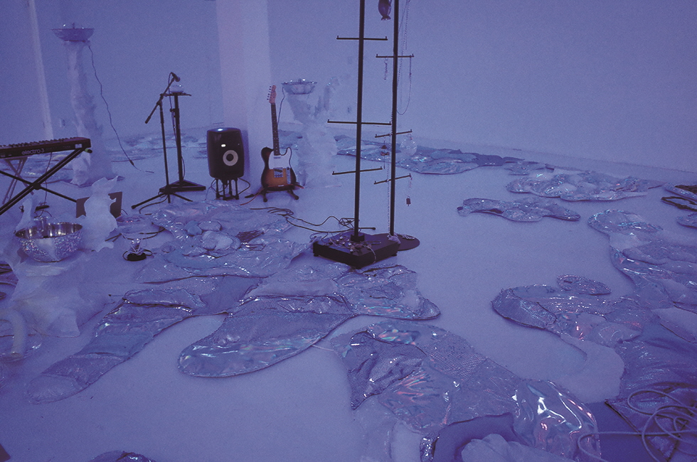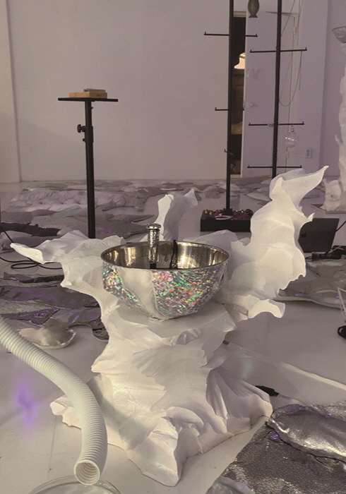 “디지털 테크놀로지가 가져다준, 실재를 능가할 만한 시공간의 폭과 구체성을 지닌 다양한 경험은 오히려 시각을 제외한 어떤 감각에도 집중할 수 없게 만들었습니다.” 바로 이런 맥락에서 소외된 감각에 대해 얘기하고 싶다는 밴드바우어는 요즘 특히 ‘소리(sound)’에 관심을 갖고 공동 작업을 해나가고 있다. 사실 필자가 그들의 작업 세계를 접하고 끌리게 된 계기도 바로 ‘사운드’였다. 지난달 서울 성수동 거리를 지나가다가 희뿌연 스모그에 뒤덮인 전시 공간을 보고는 호기심에 이끌려 들어갔다. 흐린 시야 사이로 다양한 조각적 형태의 설치물과 전자오르간, 전자기타 등이 펼쳐져 있는 공간. 누군가 살며시 다가와 낮은 목소리로 편히 앉아 소리를 감상해보라고 하기에, 간만에 오롯이 소리에 집중했다. 유리구슬이 떨어져 어딘가에 부딪히는 소리, 타닥타닥 장작 타는 소리, 물이 길을 찾아가는 소리, 바람과 풍경 소리 등 다양한 사물이 움직이면서 만들어내는 에너지와 공기의 흐름이 ‘소리’로 다가왔다. 이렇듯 밴드바우어는 자체 제작한 악기 오브제로 소리를 만들어내고, 그소리를 더욱 풍부하게 경험할 수 있도록 설치와 영상 작업 등 다양한 매체를 함께 구성한다. 그렇게 하나로 규정지을 수 없는 풍경이 되어 관객에게 다가간다. 감각의 증폭을 위한 오브제로 구성된 공간에서 편안하고 거부감 없이 스며드는 소리를 접하노라면 머리로 이해하는 예술이 아니라 감각을 건드리는 예술을 경험하게 된다. 밴드바우어는 지난해 현대미술 전시 공간인 플랫폼엘에서 실시한 다원 예술 분야의 기획 공모에서 최우수 작가 팀으로 선정됐다. 이들은 전시마다 라이브 공연을 통해 소리에 대한 진정성 있는 경험을 관객과 함께 나누고자 한다. 밴드바우어의 작업을 감상하다 보면 시간을 바탕으로 한 우리네 삶을 가장 원시적이고 원초적으로 표현하는 게 소리가 아닐까 하는 생각이 스친다.