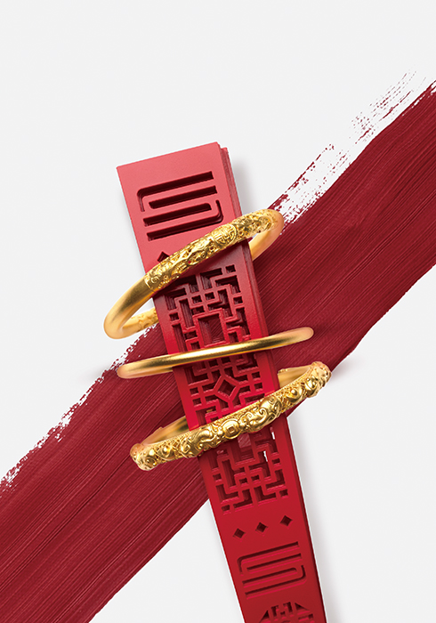 4 금전을 상징하는 원보와 비휴 디자인을 뱅글 브레이슬릿에 세공해 심플하면서도 멋스러움을 전한다. (위부터 차례대로) 24K 순금 999 행운과 부 뱅글 팔찌, 헤리티지 뱅글 팔찌, 번영 비휴 뱅글 팔찌.