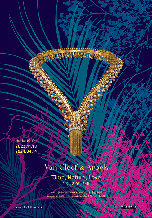 작가이자 교수 알바 카펠리에리(Alba Cappellieri)의 큐레이팅으로 완성한 전시장은 크게 세 가지 공간(시간, 자연, 사랑)으로 나뉜다. 그녀는 이탈리아 작가 이탈로 칼비노(Italo Calvino)의 <다음 천년기를 위한 여섯 가지 메모(Six Memos for the Next Millennium)>에서 핵심적인 개념을 차용해 메종 작품과의 연관성, 그리고 시간과의 관계를 해석했다. 첫 번째 공간인 ‘시간’에서는 파리, 머나먼 곳, 패션, 무용, 건축 등 열 가지 세부 주제로 나누어 작품을 소개하고, ‘자연’에서는 식물과 동물을 통해 표현한 자연의 아름다움을 그리며, 마지막으로 ‘사랑’ 공간에서는 사랑의 상징성과 마음을 담은 선물로 구현된 작품을 선보인다. 여기에 건축 디자이너 요한나 그라운더(Johanna Grawunder)의 빛 연출까지 더해 각각의 공간은 신비롭고 서정적인 분위기가 넘쳐흐른다. 그레이스 켈리의 티아라, 엘리자베스 테일러의 다이아몬드 목걸이, 윈저 공작 부인의 지프 네크리스 등 주얼리 역사의 한 페이지를 장식하는 전설적인 작품까지 볼 수 있는 기회. 하이 주얼리 메종의 세계를 선보이는 이 전시는 4월 14일까지 디뮤지엄(D Museum)에서 만날 수 있다.문의 1877-4128