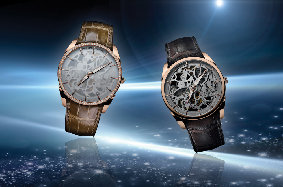 1 심플하고 우아한 톤다 1950 기본 디자인에 정교하게 가공한 스켈레톤 무브먼트를 결합한 올해의 신제품이다. 왼쪽 제품이 여성용, 오른쪽 제품이 남성용이다.