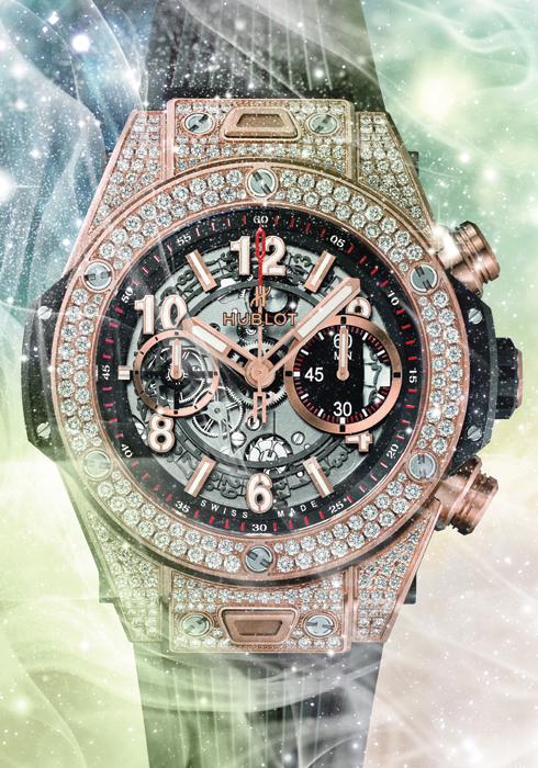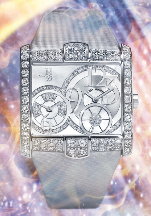 오버사이즈 케이스에 비대칭 원형 듀얼 타임 다이얼이 매력적인 대범한 여성 워치. 다양하게 변형한 원형 모티브와 다이아몬드 세팅이 특징이다. 7천만원대.