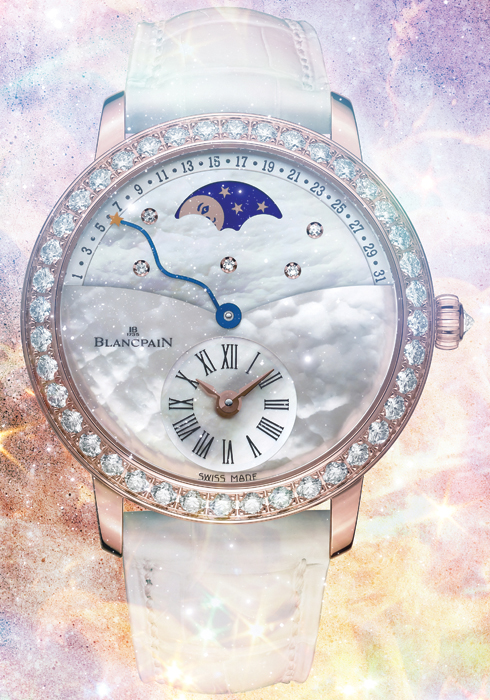 머더오브펄 다이얼에 로맨틱한 문페이즈와 다이아몬드로 표현한 별 모티브를 더해 시적인 아름다움을 담았다. 레트로그레이드 날짜 표시 창이 우아함을 더한다. 4천8백만원대.