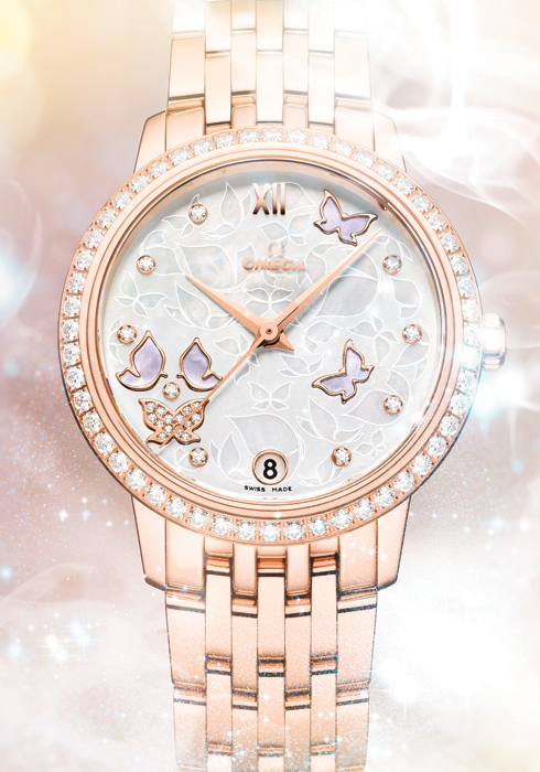 나비를 모티브로 머더오브펄과 다이아몬드, 로즈 골드가 섬세하고 아름답게 어우러진 드 빌 컬렉션의 새로운 버전. 최근 이 컬렉션의 론칭을 위해 오메가의 앰배서더인 니콜 키드먼이 서울을 찾기도 했다. 오직 여성만을 위한 컬렉션이기에 더할 나위 없이 사랑스럽다. 3천9백만원대.