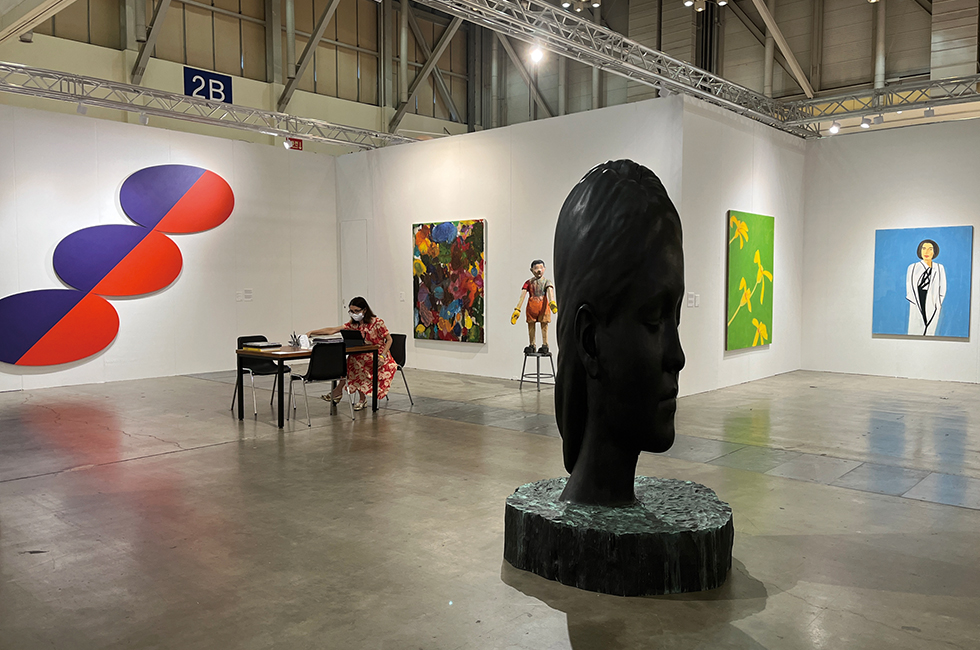 사실 “작품이 없어 못 판다”고 말하는 관계자들이 다수다. 지구촌 미술 시장이 워낙 좋고 아직은 물류의 제약도 있는 터라 부산에 오고 싶어도 부스를 채울 만한 작품의 공급이 달린다는 얘기다. 더구나 유수 글로벌 갤러리들은 오는 9월 서울에 처음 진출하는 세계적인 아트 페어 프리즈(Frieze)에 참가하기 때문에 어쩔 수 없이 몸을 사리기도 했던 듯하다. 수요는 하늘을 뚫을 기세인데 작품을 찍어낼 수도 없는 터라 철저히 ‘셀러 주도의 시장’이 펼쳐지고 있는 형국이다. 이런 상황에서 올해 눈에 띈 ‘신참자(new comer)’는 미국 갤러리인 그레이(GRAY)다. 이 갤러리는 파블로 피카소, 데이비드 호크니, 샘 프랜시스 등 쟁쟁한 작가들의 작품을 선보였다. 이 중 삼차원 사진과 모델링 소프트웨어를 활용한 ‘포토그래픽 드로잉(photographic drawing)’ 방식의 8.7m 대형 작품인 호크니의 ‘Pictures at an Exhibition’(2018)과 스페인 작가로 우리나라에도 소개된 공공 미술 작품으로 유명한 하우메 플렌자(Jaume Plensa)의 커다란 청동 두상 작품 ‘Green Forest’(2019) 등은 인스타그램 같은 SNS상의 ‘인기 콘텐츠’이기도 했는데, 둘 다 판매된 것으로 알려졌다. 그레이 관계자는 “맥아서 비니언(McArthur Binion), 짐 다인(Jim Dine), 알렉스 카츠(Alex Katz) 등의 작품을 포함한 (양호한) 판매 실적을 발표하게 되어 기쁘다”고 말했다.