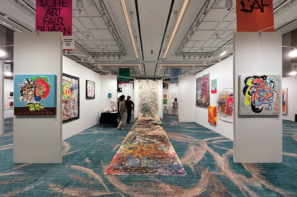 흔히들 아트 페어에도 ‘수명’이 있다고 한다. 따라서 성장세를 지속적으로 끌어올리거나 유지하고 노화를 막으려면 ‘아트 신(scene)’을 이루는 다각적인 행보가 나란히 전개되어야 한다. 도시 자체적으로 문화 예술을 향유하는 인구가 타지에서 찾아올 정도로 매력적인 인프라와 콘텐츠를 갖추어야 한다는 논리다. 사실 컬렉터층이나 작가층, 미술관과 갤러리 등의 인프라 면에서 그다지 탄탄한 토대를 지녔다고 평가받지 못했던 부산이 3~4년 전부터 ‘아트 도시’로서 가능성을 내비친 배경에는 아트 신 자체가 풍부해진 변화가 자리하고 있었다. 2018년 을숙도에 부산현대미술관이 문을 열면서 생태, 환경, 노동 등 첨예한 사회 이슈들을 아우르는 동시대 예술을 소개하는 동시에 미술 축제인 부산비엔날레의 메인 전시장 역할도 톡톡히 해내고 있으며, 국내 메이저 화랑인 국제갤러리 부산점이 망미동의 복합 문화 단지 F1963에 둥지를 틀었는가 하면, 지역 기반의 작가를 지원하는 중소 갤러리들이 하나둘씩 생겨나고 있다. 또 아트부산의 무대인 BEXCO 전시장 이웃에 자리한 부산시립미술관은 2019년부터 별관인 ‘이우환 공간’에서 세계적인 현대미술가를 초청하는 기획전 시리즈 ‘이우환과 그 친구들’을 해마다 열면서 수준을 높였고, 최근 들어 흥미로운 전시 콘텐츠로 대중성과 내실을 동시에 꾀하고 있다. 현재 한국현대미술의 주요 지점에 위치한 작가를 소개하는 개인전의 4탄으로 ‘몸’에 대한 주제 의식을 꾸준하게 펼쳐온 <이형구> 전시(오는 8월 7일까지)와 관람객들이 요가, 댄스 등 여가 콘텐츠를 미술관에서 함께하는 기획전 <나는 미술관에 ●●하러 간다>(오는 10월 16일까지)도 호응을 얻고 있는데, 이 기간 부산을 찾은 아트부산 방문객의 ‘발품’도 덩달아 팔게 했다.