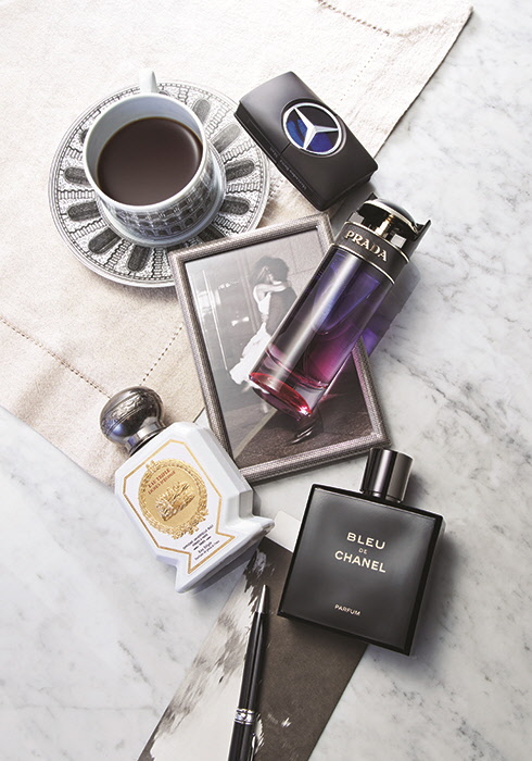 (위부터) 메르세데스-벤츠 맨 그레이 베르가모트, 핑크 페퍼, 앰버우드, 머스크 향을 조합한 우디 프레시 계열의 남성 향수. 50ml 6만9천원. 문의 02-3443-1805 프라다 캔디 나이트 비터 오렌지, 아이리스, 네롤리, 머스크, 코코아 바닐라 향이 어우러진 여성 향수. 50ml 13만4천원. 문의 02-3443-1805 불리 1803 오 트리쁠 야생 이끼, 갈바늄 에센스, 제라늄 에센스를 조합해 이국적인 향을 선사하는 워터 베이스 향수 75ml 20만5천원. 문의 02-515-0824 샤넬 블루 드 샤넬 빠르펭 앰버, 샌들우드, 머스키 어코드가 깊고 풍부한 우드 시트러스 향을 전하는 남성 향수 50ml 13만원. 문의 080-332-2700 |