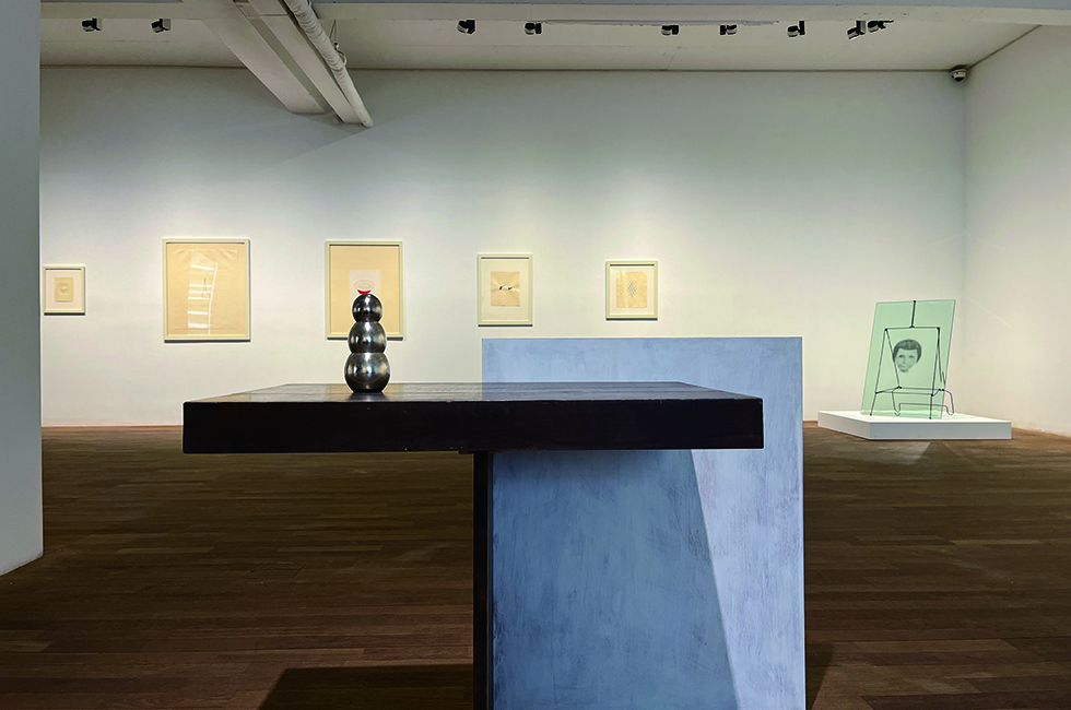 시원하고 여유 있는 공간 구성 덕분에 관람객들에게 작품에 오롯이 집중할 수 있는 환경을 선사하는 서울 평창동 가나아트센터. 전시장 입구로 들어서면 조각적인 느낌의 나무 탁자 위에 동글동글한 모양의 작은 오브제가 놓여 있는 모습이 먼저 시야에 담긴다. 전시 작가 로버트 테리엔(Robert Therrien)이 자신의 초상처럼 여겼다는 ‘눈사람’ 조각인 ‘No title(snowman)’(2018)이라는 작품인데, 마치 반갑다고 첫인사를 건네는 듯하다. 테리엔은 눈을 구경하기 힘든 미국 로스앤젤레스에서 활동했지만 원래 시카고 태생으로 어릴 적 눈사람을 만들던 추억을 자신만의 간결한 이미지로 다듬은 조각으로 표현해냈다. 함께 전시된 나무 탁자는 2009년 작품 ‘No title(desk)’로 작가가 이 앙증스러운 조각을 그 위에 놓아두는 걸 좋아했다고 한다. 이렇듯 첫 전시 섹션에는 아기자기한 소품과 단순미를 품은 드로잉 등 평면 작품도 볼 수 있는데, 혹시 테리엔에게 유명세를 안겨준 대표작을 해외 미술관에서 본 적이 있다면 살짝 의외라고 느낄지도 모르겠다. ‘In a Big Big World’라는 팝송 가사가 절로 떠오를 정도로 커다란 테이블, 접시 등 ‘기념비적 조각’ 작업으로 흔히 알려져 있어서다. 하지만 그는 작은 작품을 만드는 데도 관심이 많았고, 실제로 소소한 오브제는 물론 드로잉, 사진, 판화 같은 다수의 평면 작품을 남기는 등 2차원과 3차원 매체를 자유로이 넘나들었다. 이번 <at that time>展은 그의 다면적인 작업 세계를 두루 접할 수 있다는 점에서 흔치 않은 기회다.