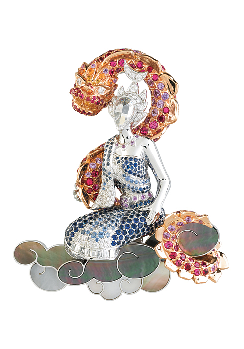 4 파리 랑베르 호텔에서 개최된 오리엔탈 볼을 모티브로 삼은 작품으로 용의 자태가 인상적인 ‘팜므 오 드래곤 데코 클립’.