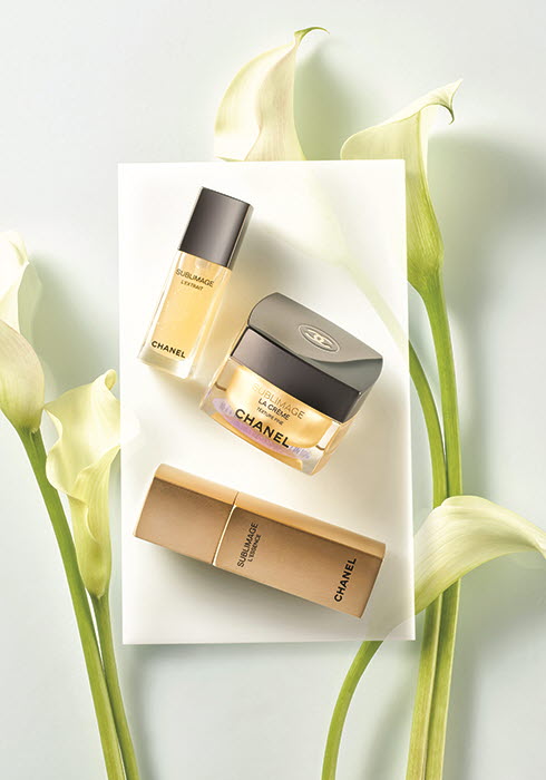 (위부터) 피부 재생과 회복에 탁월한, 그린 다이아몬드라 불리는 바닐라 플래니폴리아가 메인 성분인 강력한 회복 트리트먼트 수블리마지 렉스트레 15ml 63만8천원, 피부의 필수적인 생명 인자 합성에 작용하고 활동성을 증대해 강력한 재생 효과를 발휘하는 수블리마지 라 크렘 텍스쳐 파인 50g 49만원, 무한한 피부 생명력과 광채, 이중 디톡스 효능을 선사하는 수블리마지 레쌍스 30ml 52만원대 모두 샤넬. 문의 080-332-2700