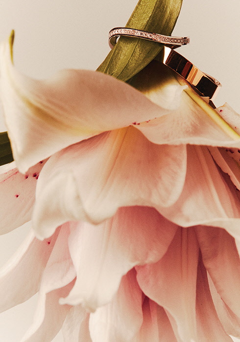 58개의 다이아몬드를 세팅한 화이트 골드 소재의 아쿠아 스윙 링 2백80만원대, 브랜드의 아이코닉 웨이브 패턴을 차용한 우아한 곡선형 디자인이 돋보이는 옐로 골드 소재의 아쿠아 스윙 링 1백20만원대 모두 오메가.