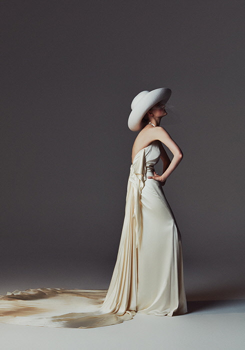 과감한 백 라인으로 고혹적인 면모를 강조한 홀터넥 머메이드 드레스 8백만원대 셀린 by 이명순웨딩드레스 블랙라벨.