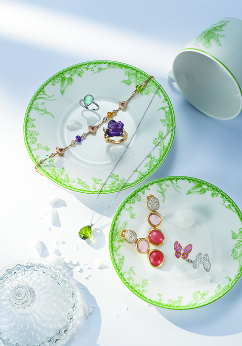 부채꼴의 유려한 곡선과 다양한 젬스톤을 접목해 현시대를 살아가는 모든 여성을 예찬하는 컬렉션. 애미시스트, 블루 토파즈, 시트린 쿼츠, 페리도트의 다채로운 빛과 화려하게 반짝이는 다이아몬드의 조합이 생기 넘치고 기분 좋은 에너지를 전한다. 1천3백만원대. 문의 02-2056-0171