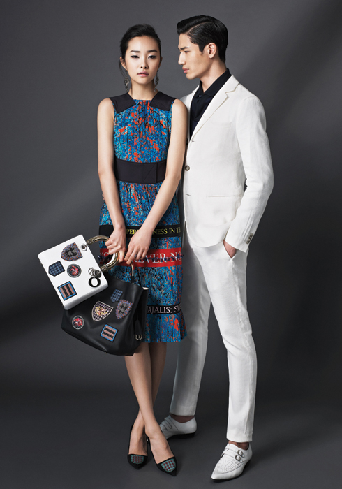(여) 블루 슬리브리스 원피스, 블랙 하운드투스 포인트 슈즈, 블랙 백, 화이트 백, 모두 가격미정 디올. 볼드한 이어링 18만원 피버리쉬 앤 너티. 화이트 버클 슈즈 1백20만원 생로랑. |