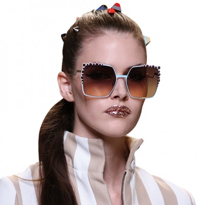2017 S/S 여성 컬렉션을 통해 공개한 캔아이 선글래스는 오버사이즈 사각 테, 반투명 렌즈, 알록달록한 스터드, 그리고 아이스크림을 떠올리게 하는 컬러 테의 조화가 경쾌한 무드를 자아낸다.