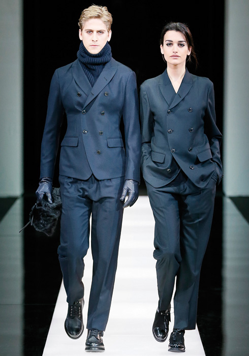 조르지오 아르마니가 2015 F/W 컬렉션을 통해 성의 경계를 벗어난 젠더리스 패션을 선보였다. 디자이너 조르지오 아르마니는 “여성들도 남자처럼 옷을 입고 싶어 할 때가 있다는 것을 알았다. 남성복에 쓰는 소재를 여성복에 접목했고, 조금 크지만 멋스러운 것이 특징이다”라고 이번 컬렉션을 설명했다. 쌍둥이처럼 같은 룩을 입고 등장한 남녀 모델이 눈길을 사로잡았으며, 특히 편안하면서도 모던한 실루엣의 여성 재킷은 이번 시즌 주목해야 할 키 아이템이다. 계속 읽기