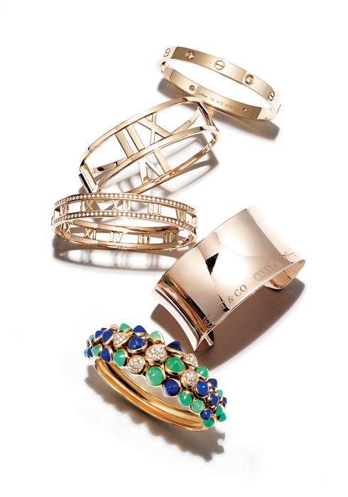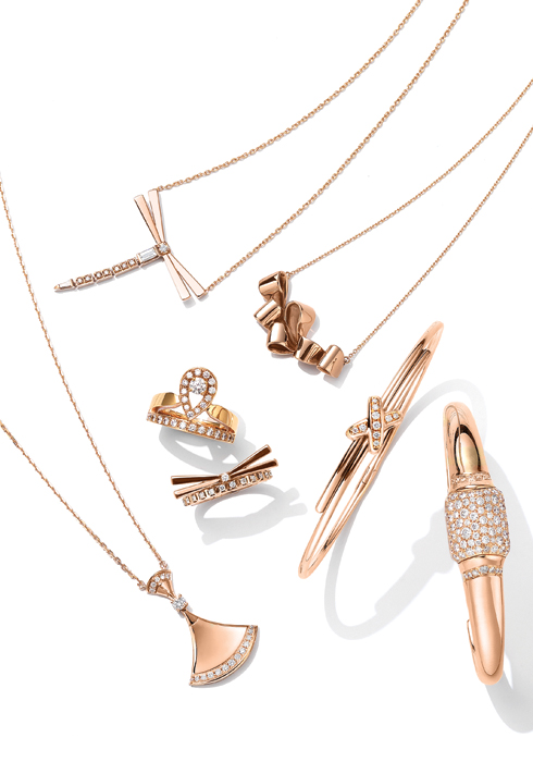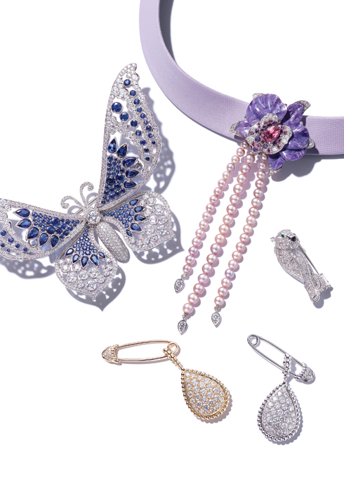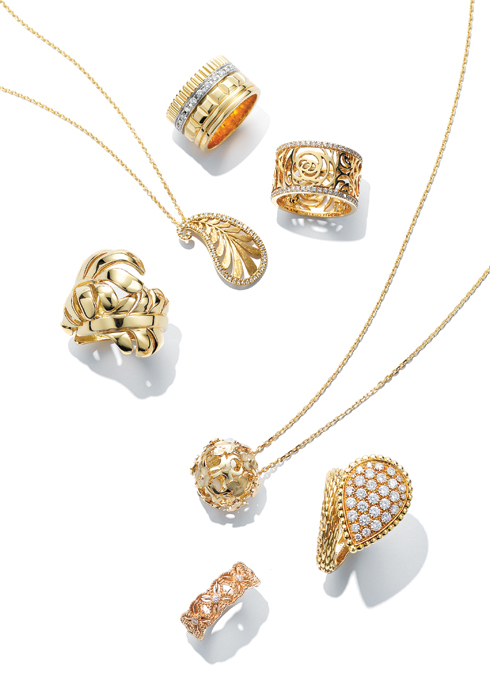 옐로 골드를 다양한 형태로 세공한 쿼트르 레디언트 에디션 링 1천만원대 부쉐론.