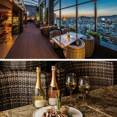 미식 문화가 갈수록 풍요롭고 다채로워지고 있는 요즘,19세기 말에서 20세기 초 예술적 낭만이 파리를 수놓은 문화적 황금기를 일컫는 ‘벨 에포크’ 시대의 낭만을 현대적으로 풀어낸 듯한 색다른 공간이 등장해 주목된다. 서울 에이든 청담 호텔 18층에 문을 연 샴페인 라운지 ‘르 캬바레 도산(Le Cabaret Dosan)’이다. 벨 에포크 시대에 성인을 위한 미식과 사교의 장이던 카바레 문화를 새롭게 해석했다는 이 라운지는 ‘샴페인 페어링(champagne pairing)’이 미식에서 점점 더 두각을 나타내는 하나의 문화로 자리 잡아가고 있는 시기에 생긴 만큼 참신한 맛과 멋의 앙상블을 추구하는 이들의 눈길을 끌 듯하다. 남산과 한강을 동시에 볼 수 있는 시원한 전망을 품은 데다 개폐식 돔형 지붕까지 있어 밤하늘의 운치를 느낄 수 있으며, 시선을 절로 잡아끄는 커다란 샹들리에와 상큼한 꽃으로 가득 찬 샴페인 셀러가 분위기를 북돋우는 인테리어, 감미롭거나 ‘힙한’ 음악 등 샴페인을 곁들인 미식을 세련되면서도 낭만적인 분위기에서 즐기도록 세심히 신경 쓴 흔적이 보인다. 미각을 담당하는 주인공은 프렌치 레스토랑 프렙의 오너 셰프 출신인 이영라 셰프와 소믈리에 양대훈 매니저. 특이하게도, 코스가 아닌 일곱 가지 요리를 한꺼번에 즐길 수 있는 ‘한 상 차림’으로 샴페인과 페어링되는데, 절기에 맞는 음식과 최적의 샴페인을 짝지어 셰프가 알아서 내주는 오마카세 방식을 택했다(제철 식재료를 기본으로, 3주마다 메뉴가 바뀐다). 한마디로 ‘프렌치 오마카세 메뉴’인 셈이다. 영업 시간은 평일 오후 6시~새벽 1시, 금·토요일 오후 6시~새벽 2시. 문의 02-6713-6730(오후 5시부터) 계속 읽기