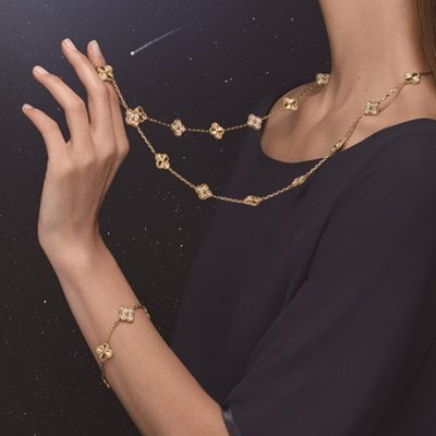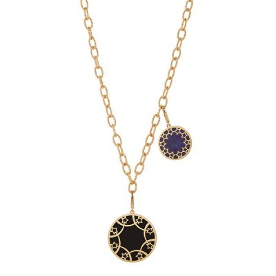 18K 옐로 골드에 오닉스 소재 럭키 슈팅 스타 펜던트 23만원, 라피스 라줄리로 제작한 럭키 스타 펜던트 75만원, 샤이닝 컷 골드 네크리스 3백83만원 모두 골든듀. 계속 읽기