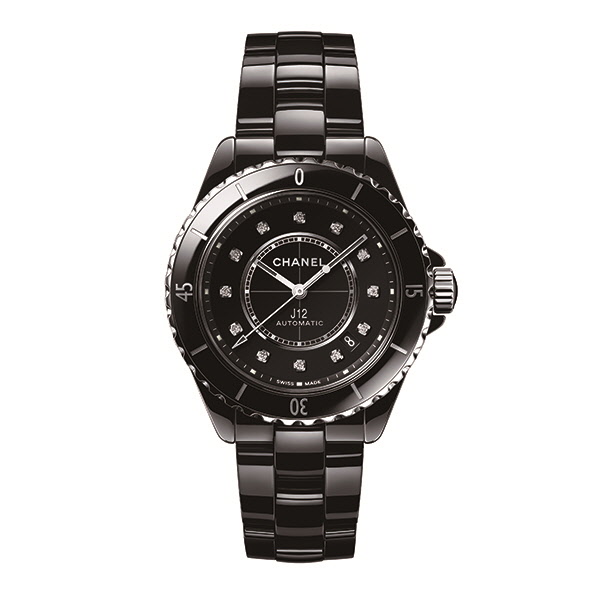 매끈한 세라믹으로 제작한 J12. 지름 38mm 케이스에 담긴 시크한 블랙 래커 다이얼에 약 0.09캐럿의 다이아몬드 인덱스로 화려함을 배가했다. 가격 미정 샤넬 워치. 계속 읽기