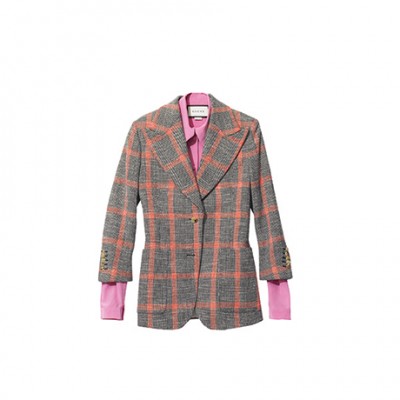 안쪽에 꽃 자수를 새긴 체크 패턴 재킷 4백40만원대, 러블리한 핑크색 블라우스 1백36만원대 모두 구찌. 계속 읽기 →