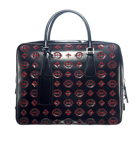 가방에 포인트를 줄 노란색 잎사귀 디자인의 네임 태그 20만원대 프라다.