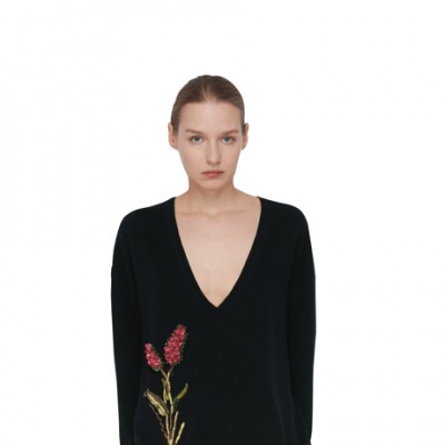 담한 색채와 섬세한 디테일이 돋보이는 이 스웨터는 2017 S/S 컬렉션의 메인 테마인 스트릿 스타일 쿠튀르를 보여주는 대표 아이템으로, 말피에와 장식 실을 사용해 플로럴 패턴을 더욱 입체적으로 완성한 것이 특징이다.