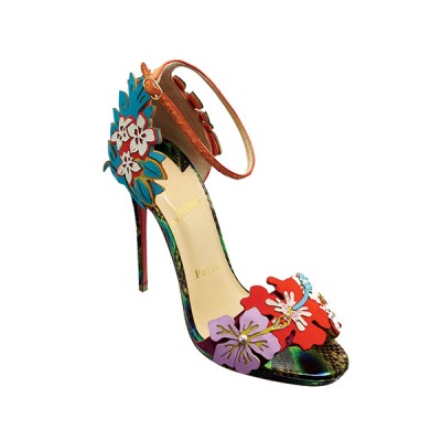 비비드한 컬러의 플라워 아플리케를 수놓은 앵클 스트랩 힐 3백37만원 크리스찬 루부탱. 계속 읽기 →