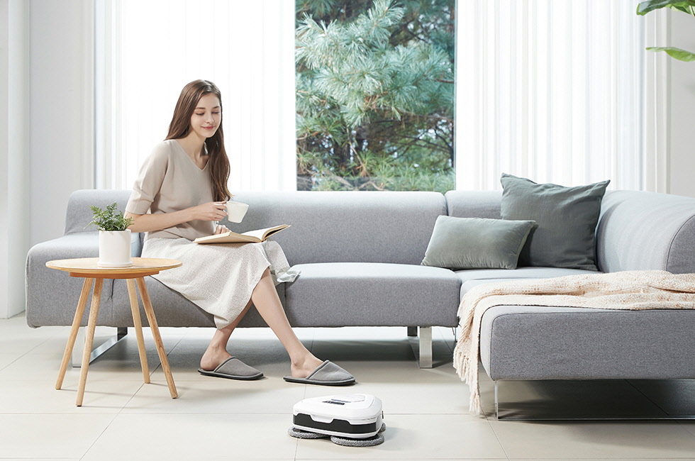 하고 자동 모드로 전환한다. 벽면청소모드는 벽면을 따라 구석과 모서리를, 자동청소모드는 이 세 가지 모드를 순환하며 2시간 동안 연속으로 청소한다. 일회용 청소포를 부착해 먼지와 머리카락 등을 청소하거나 바닥에 광을 낼 수 있는 마른 걸레질을 위한 마른청소모드와 저소음 상태로 무드등을 끈 채 야간 등 소음에 민감한 환경에서 사용하는 야간 청소모드도 갖추었다. 또 물탱크를 본체 상부에 결합해 보다 쉽고 간편하게 물을 보충하도록 했으며, 걸레를 부착하는 방식 또한 본체를 뒤집어서 부착하는 여타 로봇 청소기와 달리 삼각형 전용 크래들 위에 걸레를 놓고 그 위에 본체를 올려 정확하게 부착할 수 있도록 했다. 그뿐 아니라 본체에 손잡이가 있어 어디든 자유롭고 편리하게 이동할 수 있고, 리모컨 덕에 허리를 굽히지 않고도 청소 중 청소기의 위치를 손쉽게 조정할 수 있다.