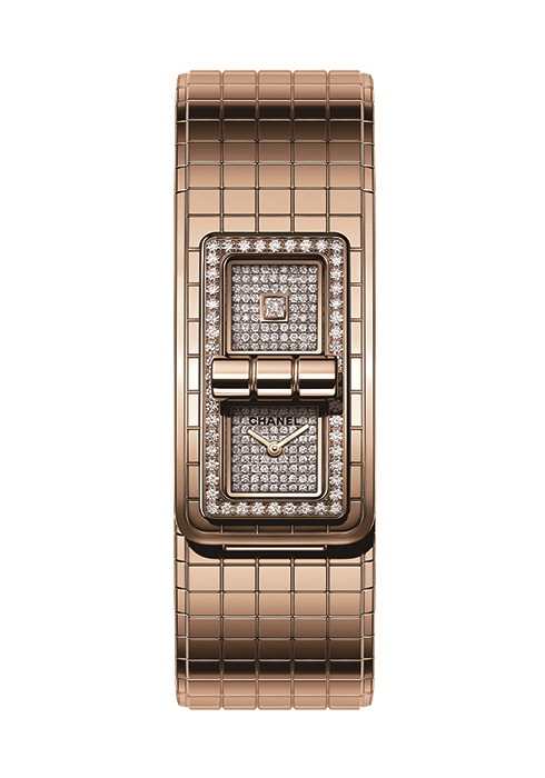 1955년 2월 탄생한 2.55 퀼팅 백의 잠금장치에서 모티브를 가져온 주얼리 워치. 경쾌하게 ‘딸깍’ 소리를 낼 듯한 클로저가 다이얼 중앙을 가로지르는 형태로, 이를 통해 퀼팅 브레이슬릿을 착용하거나 풀 수 있다. 특히 올해는 샤넬 고유의 합금 소재인 베이지 골드 모델을 처음으로 출시하는데, 은은하고 고급스러운 컬러가 매혹적이다. 여기에 다이얼, 베젤을 따라 2백4개의 브릴리언트 컷 다이아몬드와 1개의 프린세스 컷 다이아몬드를 더해 우아함 그 자체. 그 밖에 스틸과 블랙 세라믹 버전과 다이아몬드, 루비를 세팅한 하이 주얼리 피스도 선보인다. 쿼츠 무브먼트로 구동한다.