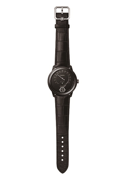 2016년 론칭한 무슈 드 샤넬은 오직 남성을 위한 시계로 인스턴트 점핑 아워, 레트로그레이드 미닛 기능을 갖춘 최초의 인하우스 칼리버 1을 장착했다. 해를 거듭하며 다양한 케이스와 다이얼로 버전을 넓혀가는 가운데 올해는 매트한 블랙 세라믹 & 스틸 케이스와 블랙 다이얼, 블랙 앨리게이터 스트랩을 장착한 누아르 에디션을 선보였다. 한눈에도 강렬하고 남성미 넘치는 디자인으로 케이스 지름은 42mm.