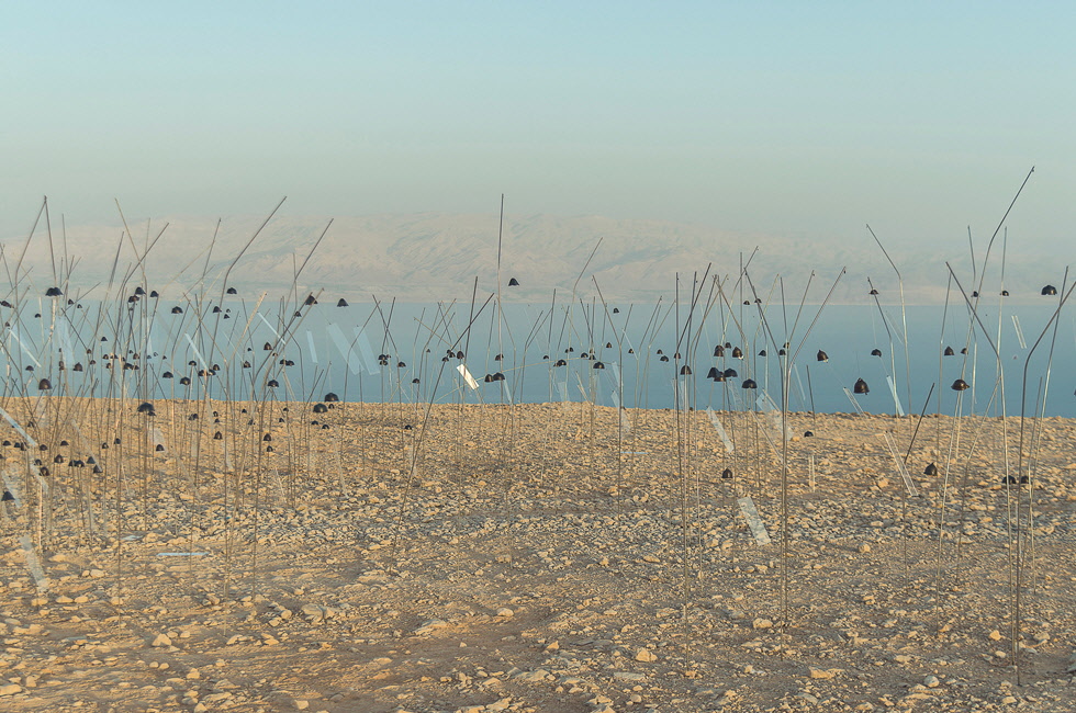 아니미타스를 소재로 한 영상 시리즈의 첫 번째 버전은 황량한 아타카마 사막을 배경으로 작가의 생일에 남반구에서 관찰되는 은하수를 재현한 작품이다. 그리고 이번에 루이 비통 전시 공간을 수놓은 작품은 각각 일본 데시마섬과 이스라엘 사해 근처에서 동일한 구성으로 재해석한 ‘아니미타스: 속삭임의 숲(Animitas: La Forêt des Murmures)’(2016)과 ‘아니미타스: 사해(Animitas: Mères Mortes)’(2017년 가을). 풀 내음 가득한 전시 공간에 은은하게 투영한 영상은 일출에서 일몰까지 한 번에 촬영해 시간의 흐름을 고스란히 보여준다. 특히 영상과 자연스럽게 어우러진 풀과 꽃의 물결 속에서 관람객이 귀 기울이는 종의 부드러운 흔들림은 작가가 묘사한 ‘별의 음악과 떠다니는 영혼의 목소리’를 떠올리게 한다. 작가가 그토록 ‘도착(ARRIVÉE)’하고자 한 목적지는 어디였을까.