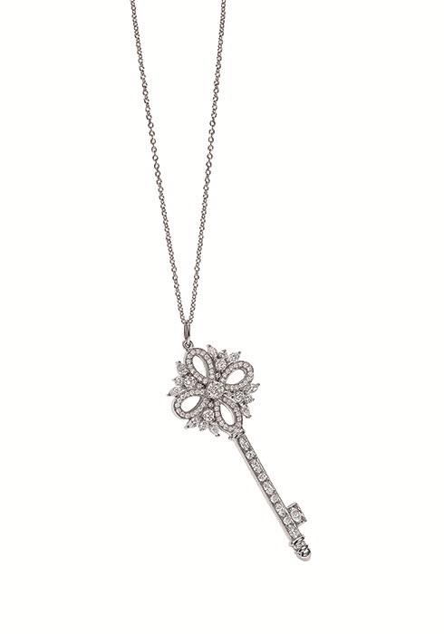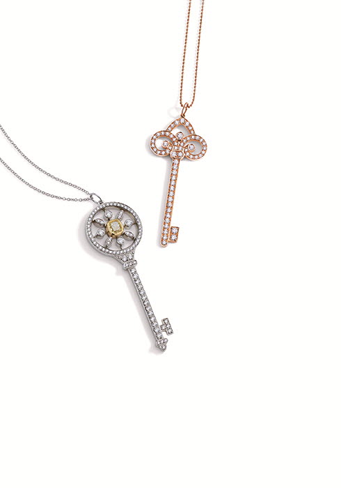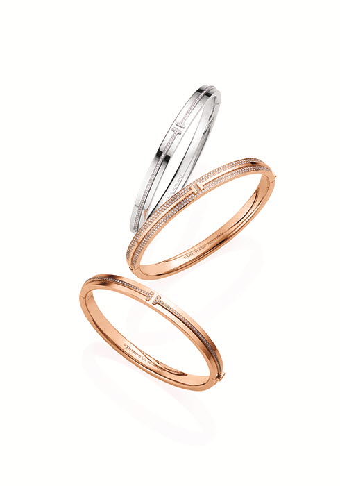 무한한 미래의 가능성을 여는 희망적인 메시지를 담은 티파니 키 컬렉션 펜던트 모두 티파니. 뉴욕의 아름다운 건축물에서 모티브를 얻은 Tiffany T Two 뱅글. 측면에 잠금장치가 있어 손쉽게 착용 가능하다. 모두 티파니.